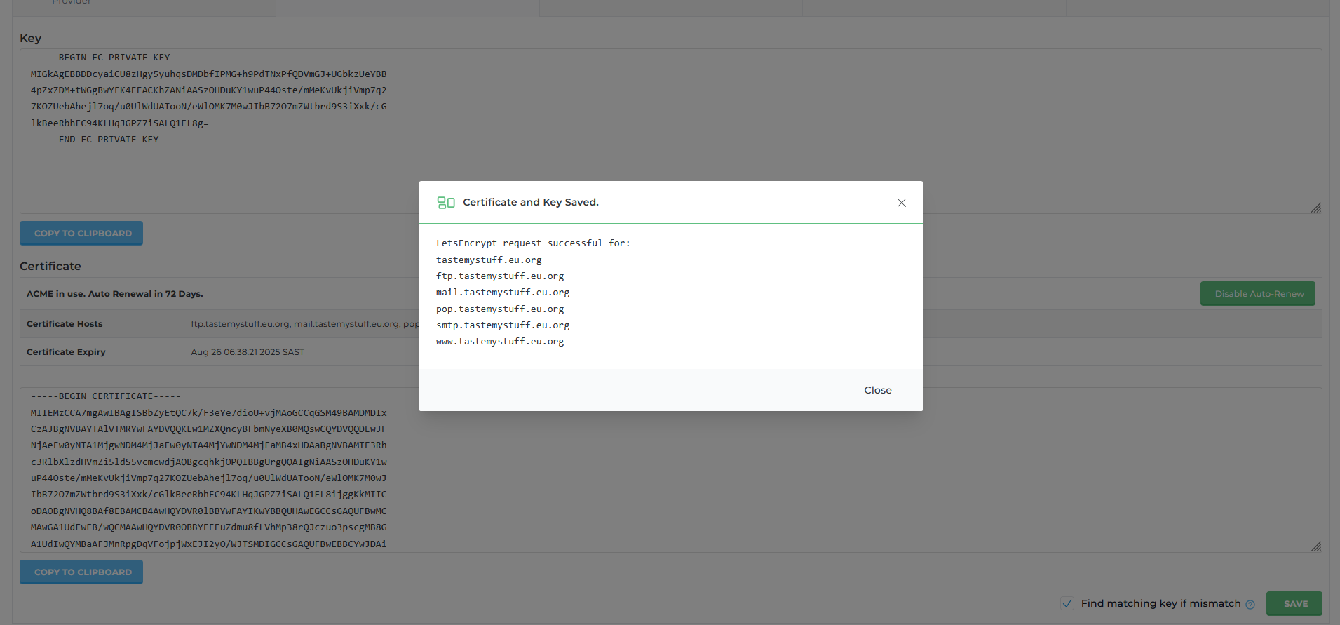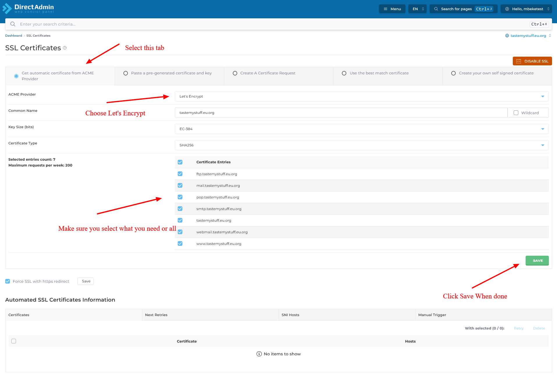 3. As per the screenshot above , start by Selecting the First Tab where you Get an Automatic Certificate from Acme provider.